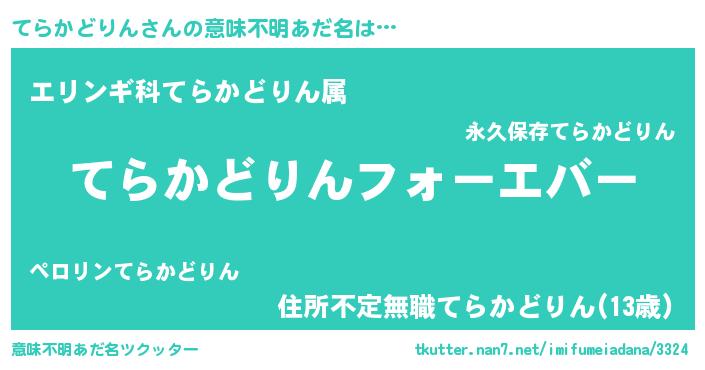 | 欧米人風あだ名 | 『てらかどりんクリステル』 |