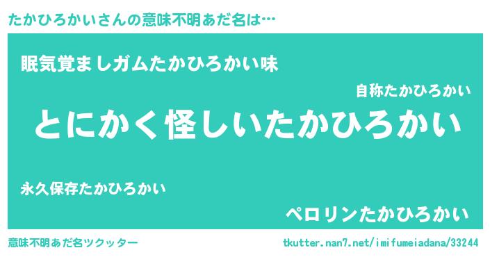 | 男性向けラノベタイトル風あだ名 | 『ダンジョンにたかひろかいを求めるのは間違っているだろうか』 |