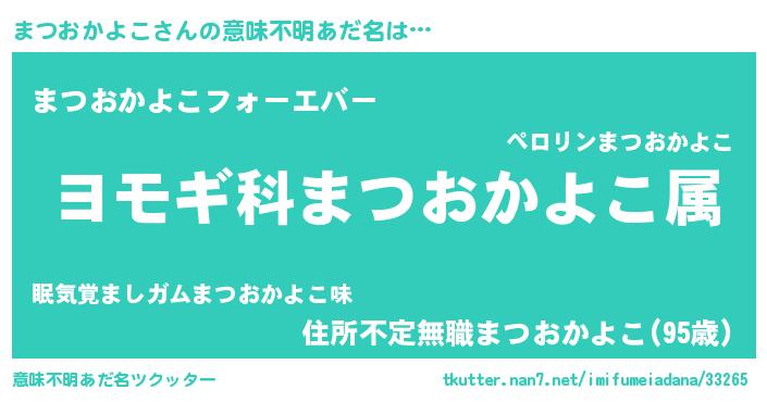| 伝説のあだ名 | 『最強の陰陽師まつおかよこ』 |
