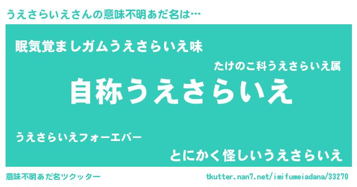 | 胡散臭い通販商品みたいなあだ名 | 『ガンによく効くアガリクス…その名も「うえさらいえ」』 |