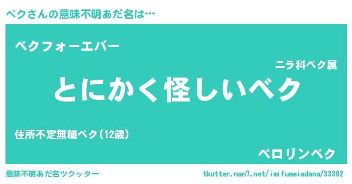 | 胡散臭い通販商品みたいなあだ名 | 『信頼と実績のサプリメント…その名も「ベク」』 |