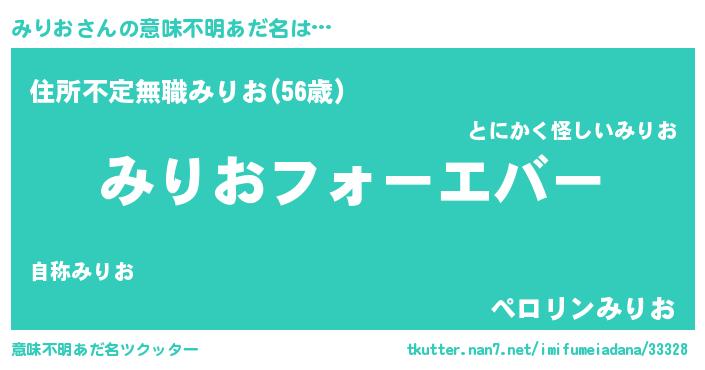 | 男性向けラノベタイトル風あだ名 | 『やはりみりおの青春ラブコメはまちがっている 』 |
