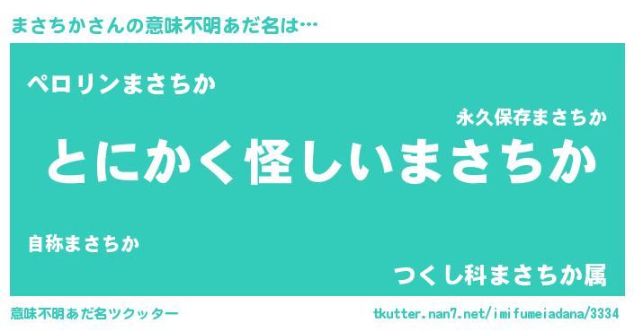 | 男性向けラノベタイトル風あだ名 | 『まさちかの嫁は女の子じゃないと思った?』 |