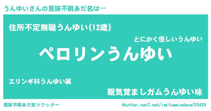 | 男性向けラノベタイトル風あだ名 | 『ウンユイアートオンライン』 |