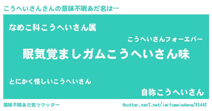 | 女子向けラノベタイトル風あだ名 | 『こうへいさん恋絵巻』 |