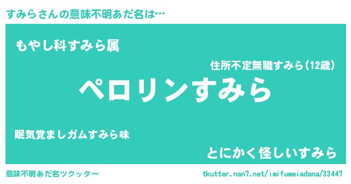 | 胡散臭い通販商品みたいなあだ名 | 『必ず成功するブレスレット…その名も「すみら」』 |