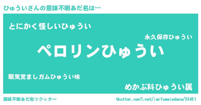 | 男性向けラノベタイトル風あだ名 | 『ひゅういの憂鬱』 |