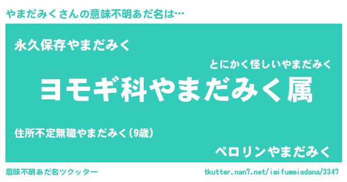 | 男性向けラノベタイトル風あだ名 | 『やまだみく~年齢イコール彼女いない歴の魔法使い~』 |