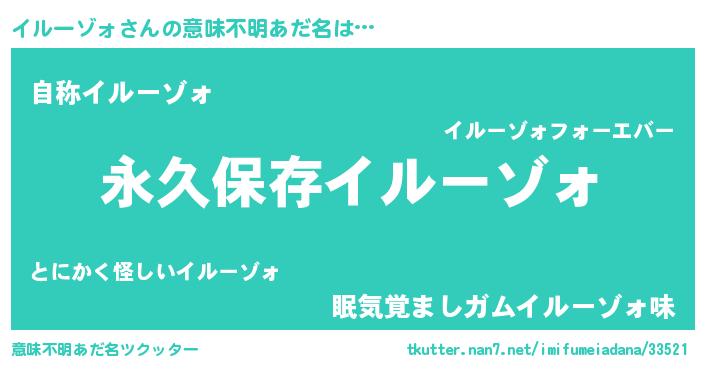 | 女子向けラノベタイトル風あだ名 | 『異世界で失敗しない100のイルーゾォ』 |