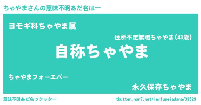 | 男性向けラノベタイトル風あだ名 | 『Re:ちゃやまから始める異世界生活』 |