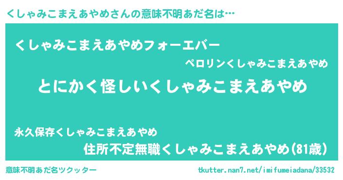 | ポケモン風あだ名 | 『ヒクシャミコマエアヤメ』『クシャダネ』 |