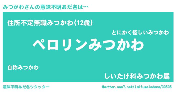 | 男性向けラノベタイトル風あだ名 | 『みつかわの憂鬱』『魔弾の王とみつかわ』 |