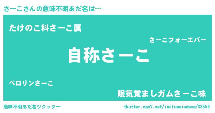 | ヒーロー風カッコイイあだ名 | 『最強戦士サーコ』『愛の使者さーこ』 |