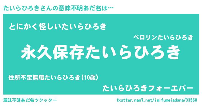 | 胡散臭い通販商品みたいなあだ名 | 『絶対に幸福をもたらす健康食品…その名も「たいらひろき」』 |