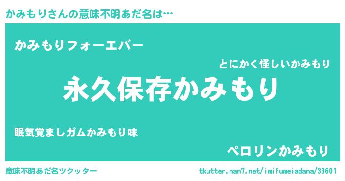 | ヒーロー風カッコイイあだ名 | 『ネオカミモリ』『ウルトラかみもりマン』 |