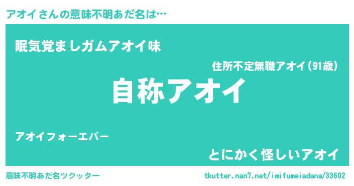 | 欧米人風あだ名 | 『ケンブリッジアオイ』『ダニエルアオイ』 |