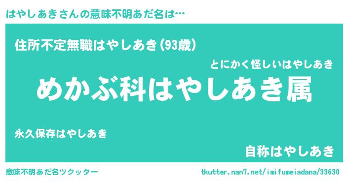 | 胡散臭い通販商品みたいなあだ名 | 『ハリウッド女優が絶賛した世界で10本だけ現存している希少なブランデー…その名も「はやしあき」』 |