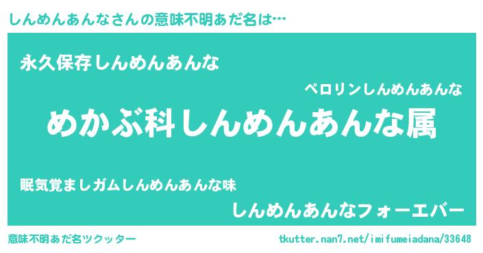| 欧米人風あだ名 | 『トリンドルしんめんあんな』 |