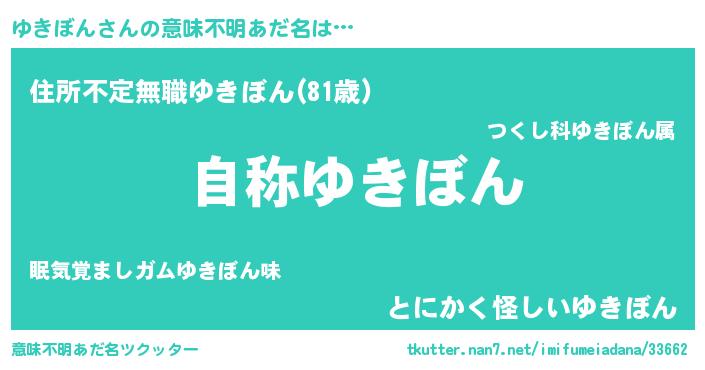 | 女子向けラノベタイトル風あだ名 | 『ゆきぼんストレイドッグス』 |