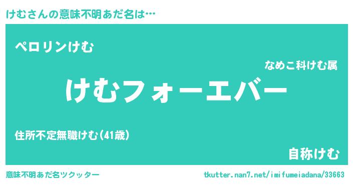 | ヘコむあだ名 | 『なまこ酢』『けむにー』『けむ(笑)』 |