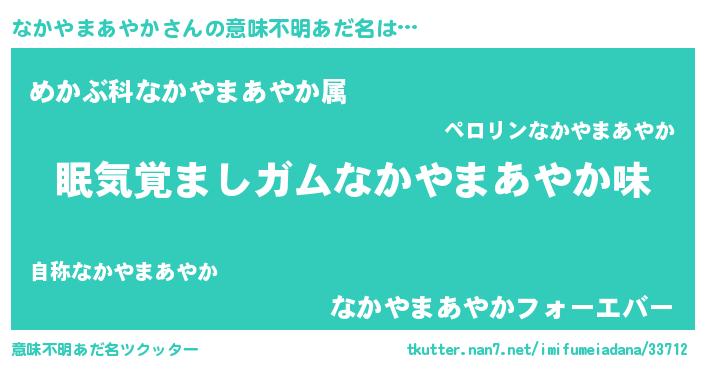 | 男性向けラノベタイトル風あだ名 | 『おまえをオタクにしてやるから、俺をなかやまあやかにしてくれ! 』 |