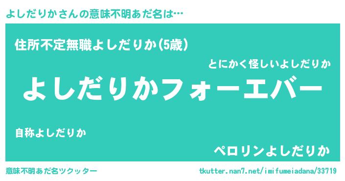 | 欧米人風あだ名 | 『よしだりかクリステル』 |
