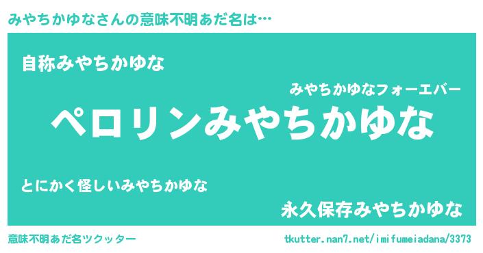 | ヘコむあだ名 | 『みやもー』『みやちかゆな(遠い目)』 |
