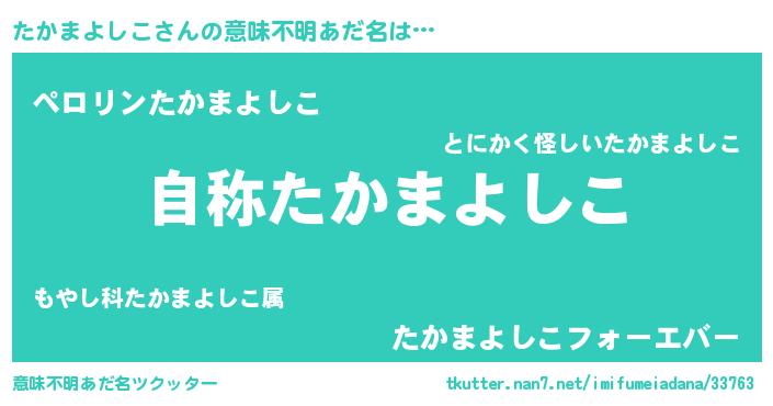 | 肩書あだ名 | 『たかまよしこ閣下』『たかまよしこ店長』 |