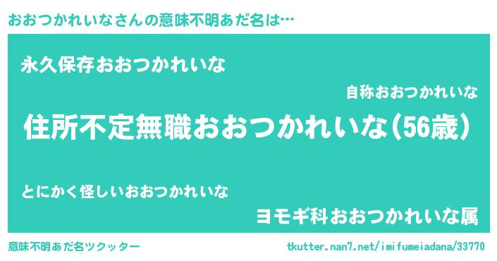 | ヒーロー風カッコイイあだ名 | 『仮面オオダー』『ネオオオツカレイナ』 |