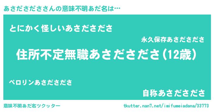 | 女子向けラノベタイトル風あだ名 | 『乙女ゲームの破滅フラグしかない悪役あさださださに転生してしまった…』 |