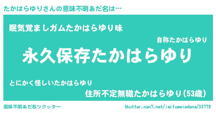| 男性向けラノベタイトル風あだ名 | 『たかはらゆりに滅ぼされるだけの簡単なお仕事です』 |