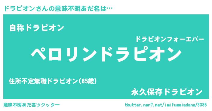| 男性向けラノベタイトル風あだ名 | 『ドラピオンアートオンライン』 |