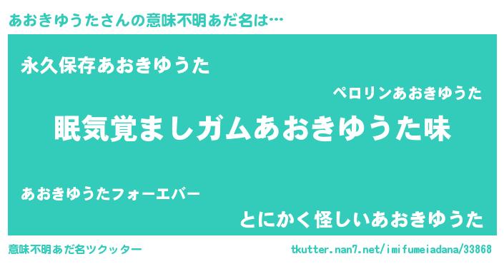 | 男性向けラノベタイトル風あだ名 | 『ノーゲーム・ノーアオキユウタ』 |