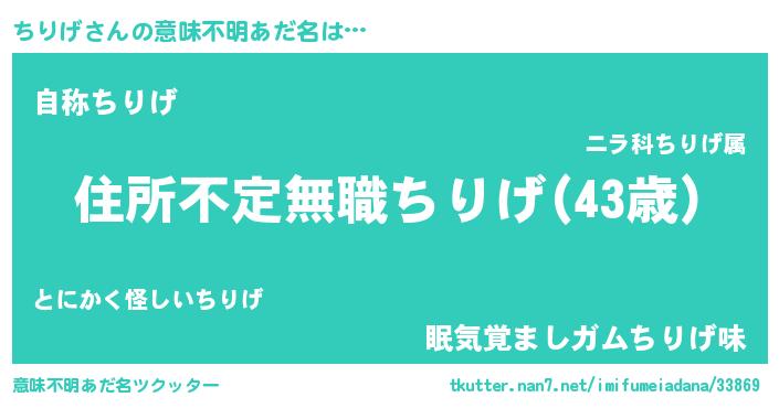 | 男性向けラノベタイトル風あだ名 | 『この素晴らしい世界にちりげを!』 |