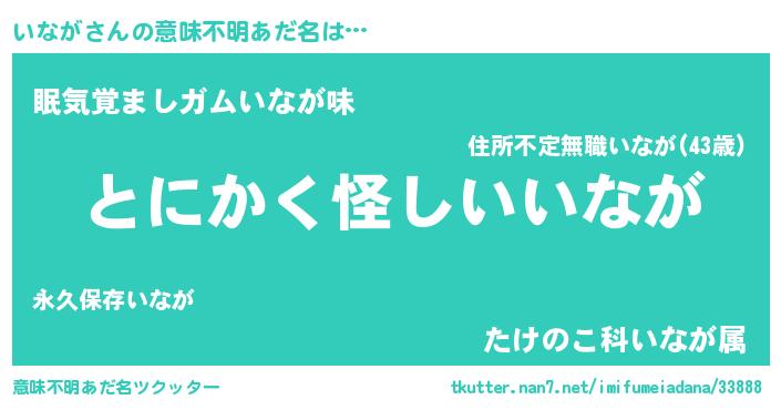 | 胡散臭い通販商品みたいなあだ名 | 『信頼と実績のサプリメント…その名も「いなが」』 |