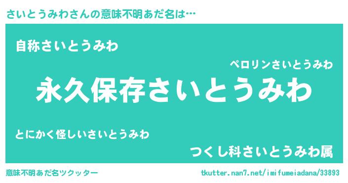 | ヘコむあだ名 | 『さいとうみわ(笑)』『さいにゅー』 |