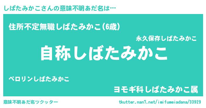 | 男性向けラノベタイトル風あだ名 | 『Re:しばたみかこから始める異世界生活』 |