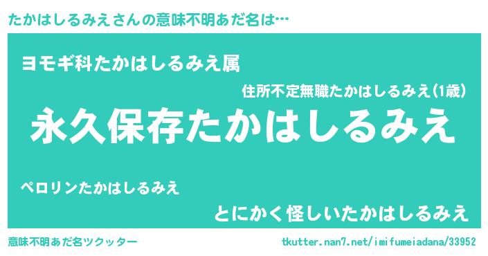 | 男性向けラノベタイトル風あだ名 | 『たかはしるみえという概念が存在しない退屈な世界 』 |