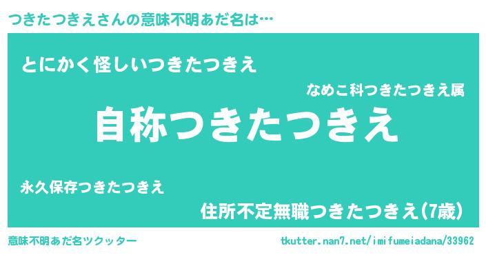| 男性向けラノベタイトル風あだ名 | 『つきたつきえに滅ぼされるだけの簡単なお仕事です』 |