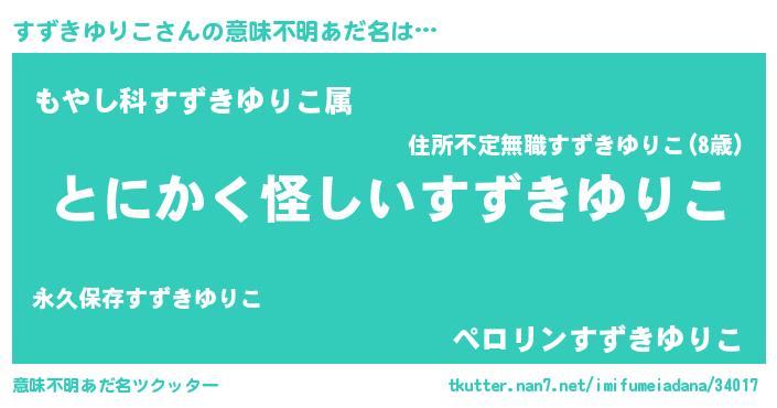 | 男性向けラノベタイトル風あだ名 | 『すずきゆりこの嫁は女の子じゃないと思った?』 |