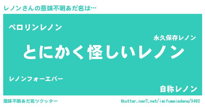 | 男性向けラノベタイトル風あだ名 | 『ダンジョンにレノンを求めるのは間違っているだろうか』 |