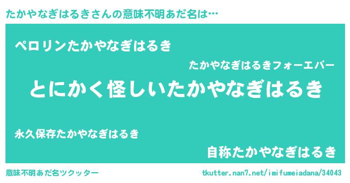 | 胡散臭い通販商品みたいなあだ名 | 『信頼と実績のペンダント…その名も「たかやなぎはるき」』 |