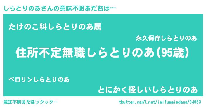 | 男性向けラノベタイトル風あだ名 | 『この素晴らしい世界にしらとりのあを!』 |