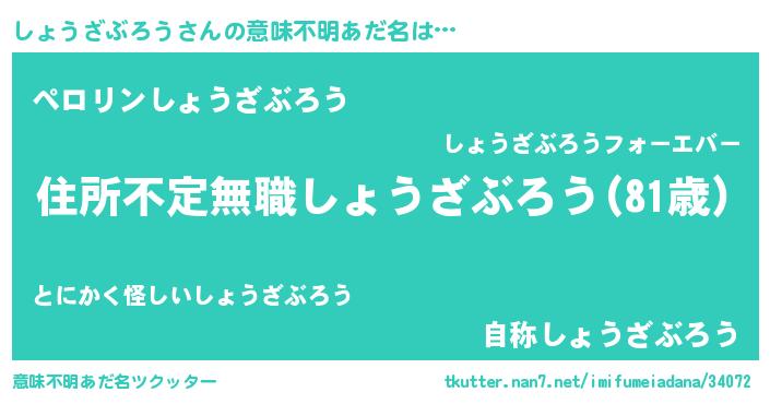 | 男性向けラノベタイトル風あだ名 | 『この素晴らしい世界にしょうざぶろうを!』 |