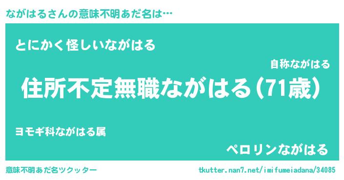 | 男性向けラノベタイトル風あだ名 | 『魔弾の王とながはる』『ながはるの憂鬱』 |