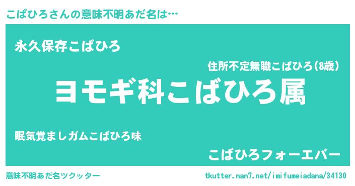 | 男性向けラノベタイトル風あだ名 | 『こばひろ~年齢イコール彼女いない歴の魔法使い~』 |