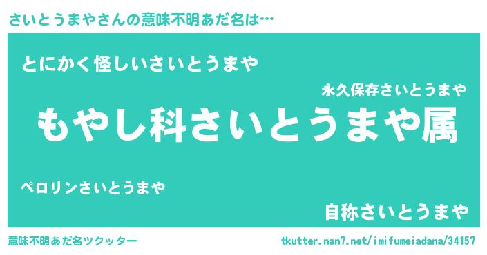 | 男性向けラノベタイトル風あだ名 | 『転生したらさいとうまやだった件』 |