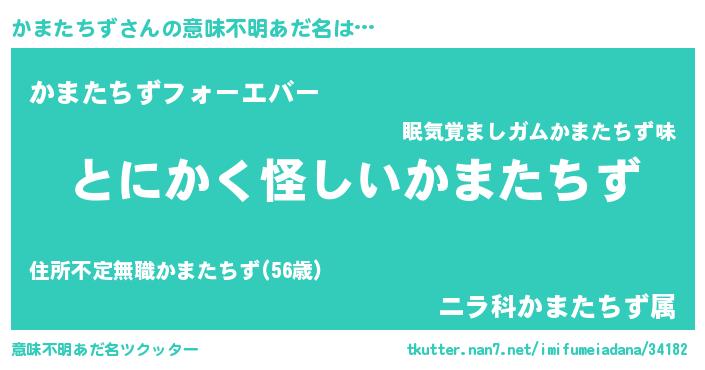 | 男性向けラノベタイトル風あだ名 | 『かまたちずの嫁は女の子じゃないと思った?』 |