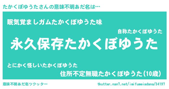 | 男性向けラノベタイトル風あだ名 | 『冴えないたかくぼゆうたの育てかた』 |