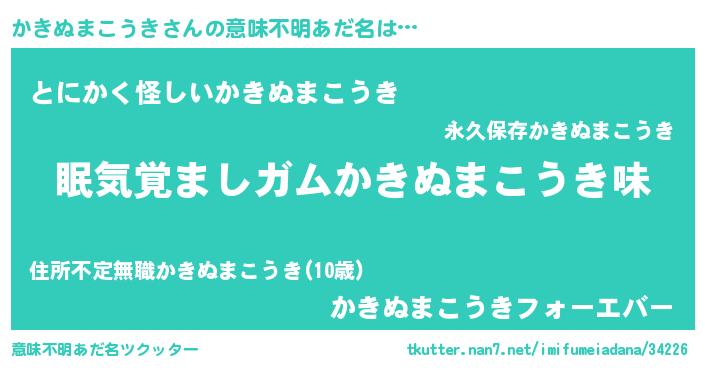 | 男性向けラノベタイトル風あだ名 | 『冴えないかきぬまこうきの育てかた』 |